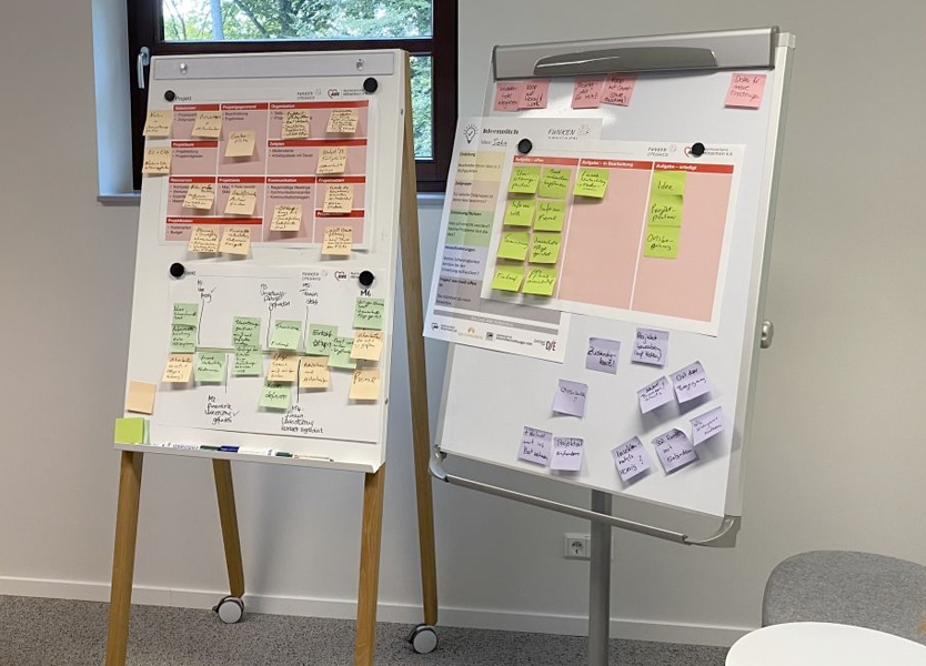 Mit dem Projekt-Canvas, dem Meilensteinplan und dem Kanban-Board ausgestattet, ging's dann an die Ausarbeitung der weiteren Schritte zur Umsetzung der Ideen.