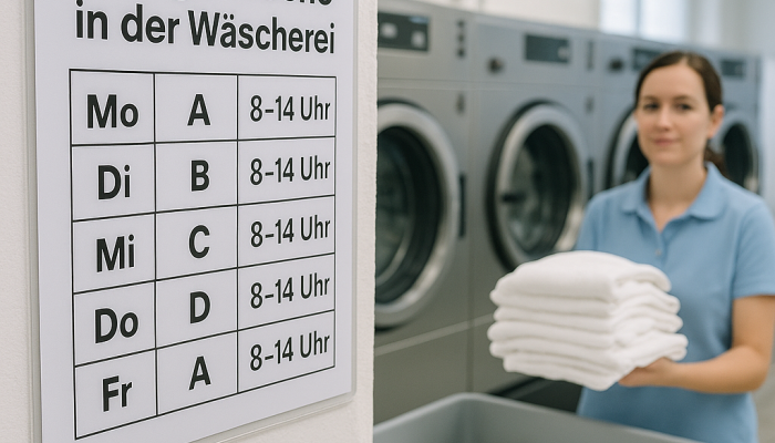 Die Wäscherei stand vor neuen Herausforderungen. Die Laufzeiten der Maschinen sollten verlängert werden. Aus der 5 Tage Woche der Kolleginnen wurde eine 4 Tage Woche der Kolleginnen in einer 5 Tage Woche der Wäscherei.